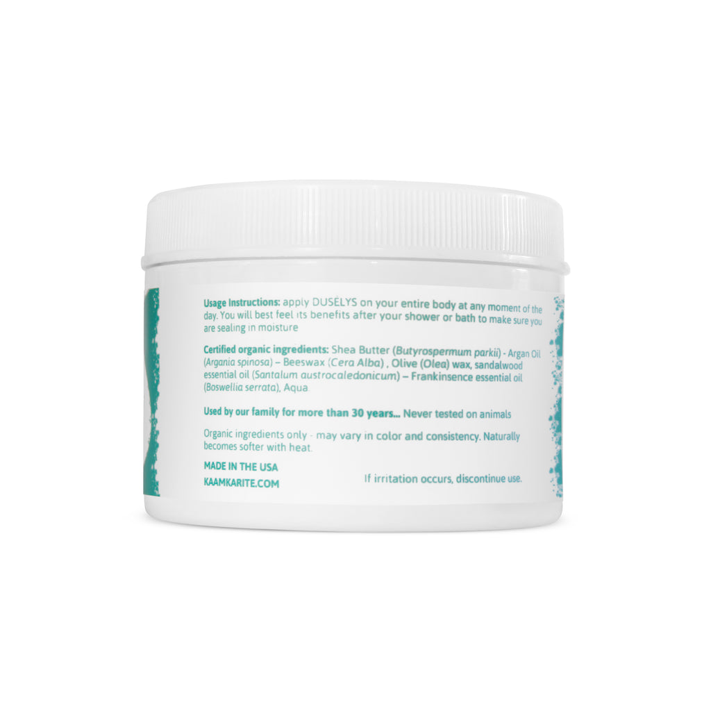 DUSÉLYS body butter leaves your skin feeling soft. It is good for face and body. Shea butter has moisturizing effects. Shea Butter deeply moisturizes skin.
